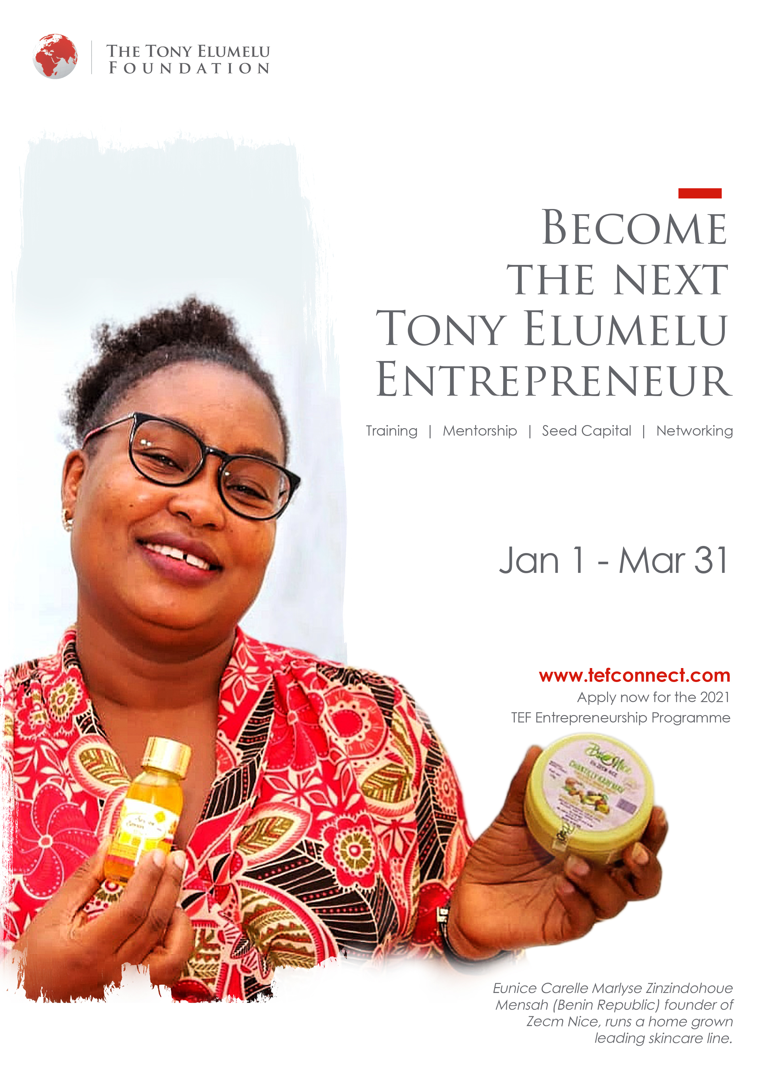Postulez pour le programme d’entrepreneuriat de la Fondation Tony Elumelu 2021